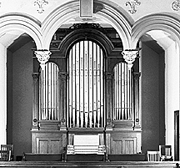 Great 16' Bourdon 8' Open Diapason 8' Rohr Doppel Flöte 8' Dulciana 4' Octave 4' Flute d'Amour 2 2/3' Twelfth 2' Fifteenth IV Mixture 16' Clarinet Swell 8' Open Diapason 8' Salicional 8' Lieblich Gedeckt 4' Principal 4' Harmonic Flute 2' Principal III Cornet 8' Trumpet 8' Oboe Pedal 16' Double Open Diapason 16' Bourdon 8' Violon Cello 4' Choral Bass 16' Trombone Couplers Swell to Great Swell to Swell Octaves Swell to Pedal Great to Pedal mechanical action |