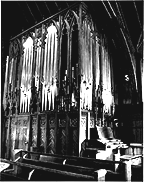Great 16' Violone (Prep.) 8' Diapason 8' Bourdon(Wood) 8' Geigen(Sw.) 8' Octave 4' Koppelflöte 2 2/3' Twelfth (Prep.) 2' Fifteenth 1 1/3' Seventeenth (Prep.) IV Fourniture 8' Trumpet Chimes Carillon Cymbelstern (Prep.) Swell 8' Geigen 8' Celeste (TC) 8' Chimney Flute 4' Principal 4' Harmonic Flute (Prep.) 2' Gemshorn III Plein Jeu 16' Fagotto (Prepared) 8' Trompette 8' Clarinet (Prepared) Tremulant Pedal 32' Resultant 16' Diapason (Ext. Great 8') 16' Violone (Prep.) (Great) 16' Subbass (Prep.-Great) 16' Bourdon (Swell Ext.) 8' Octave 8' Flute (Prep.- Sw. borrow) 4' Choral Bass (Prep.-8' Ext.) Trombone (Great 8' Ext.) 16' Fagotto (Prep.- Sw. borrow) 8' Trompette (Prep.-Sw. borrow) electro-pneumatic action |
