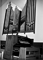 Solid cherry was used in the organ's façade to match the church's existing furnishings. The console is on a movable dolly and is made of cherry and walnut. Roman mouths on the case pipes echo the arches found in the church's windows and doorways. |