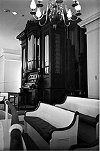 This organ started out as a turn-of-the-century Hall Organ Co. electric-action two-manual instrument for the Andover Theological Seminary, subsequently rebuilt by the Frazee Organ Co. and later moved to South Church and rebuilt again by W. W. Laws. It was then incorporated in a 1959 Andover Organ Co. electric-action rebuild with design work by Charles Fisk and Leo Constantineau. The Bozeman Organ, basically a new organ utilizing many recycled parts, includes much of the fabric and pipework of the old organ, with major additions and revoicing throughout. Reeds and mixtures were added in the manual divisions, and the layout was changed to allow for the new mechanical action and a new keydesk. |