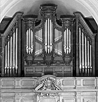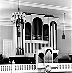Great 16' Bourdon 8' Principal 8' Chimney Flute 4' Octave 4' Flute 2 2/3' Octave Quint 2' Super Octave IV Fourniture 8' Trumpet Pedal 16' Principal 16' Sub Bass 8' Octave 8' Bourdon 4' Choral Bass IV Mixture 16' Trombone Swell 8' Bourdon 8' Viola 8' Celeste 4' Principal 4' Flute 2' Octave III Cornet III Sharp 16' Bassoon 8' Oboe 4' Clarion Tremolo Couplers Swell to Great Swell to Pedal Great to Pedal mechanical key action electro-pneumatic stop action |