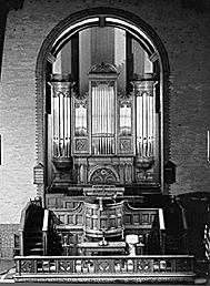Great 16' Quintaton 8' Open Diapason 8' Viola da Gamba 8' Melodia 4' Octave 4' Flute d'Amour 2 2/3' Twelfth 2' Fifteenth III Mixture Chimes Swell 16' Bourdon Treble 16' Bourdon Bass 8' Open Diapason 8' Dolce 8' Dolce Celeste 8' Stopped Diapason 4' Octave 4' Harmonic Flute 2' Piccolo III Cornet 8' Oboe 4' Clarion Tremolo Pedal 16' Diapason 16' Bourdon Unison Couplers on hitchdowns Setterboard Combination Action Crescendo Pedal mechanical key action electric stop action |